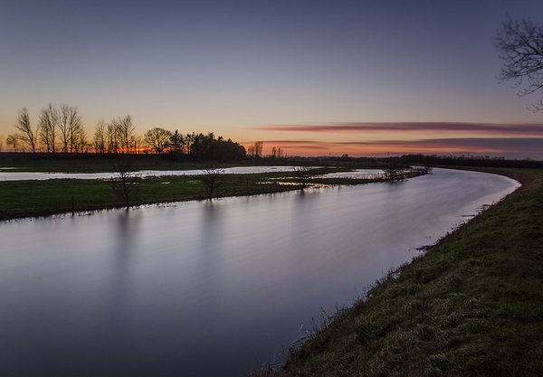 | ND-filter(gråfilter) og lang lukkertid. Audebokanalen fotograferet efter solnedgang med en lukkertid på 1,5 minut. Audebokanalen er fyldt op med vand. 04 januar 2015. |