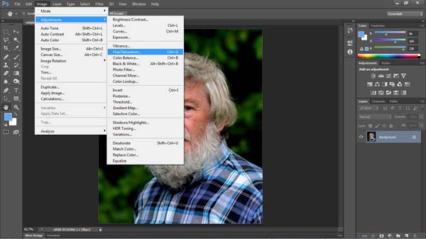 Herefter vælges Image – Adjustments - Hue/Saturation.