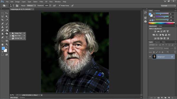 Herefter vælges Burn Tool og skyggepartier males mørkere.
