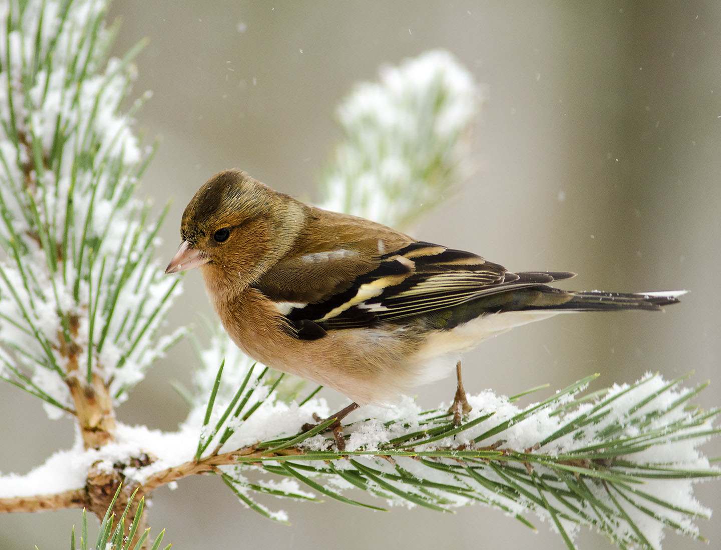 Chaffinch in snow (Fringilla coelebs).
