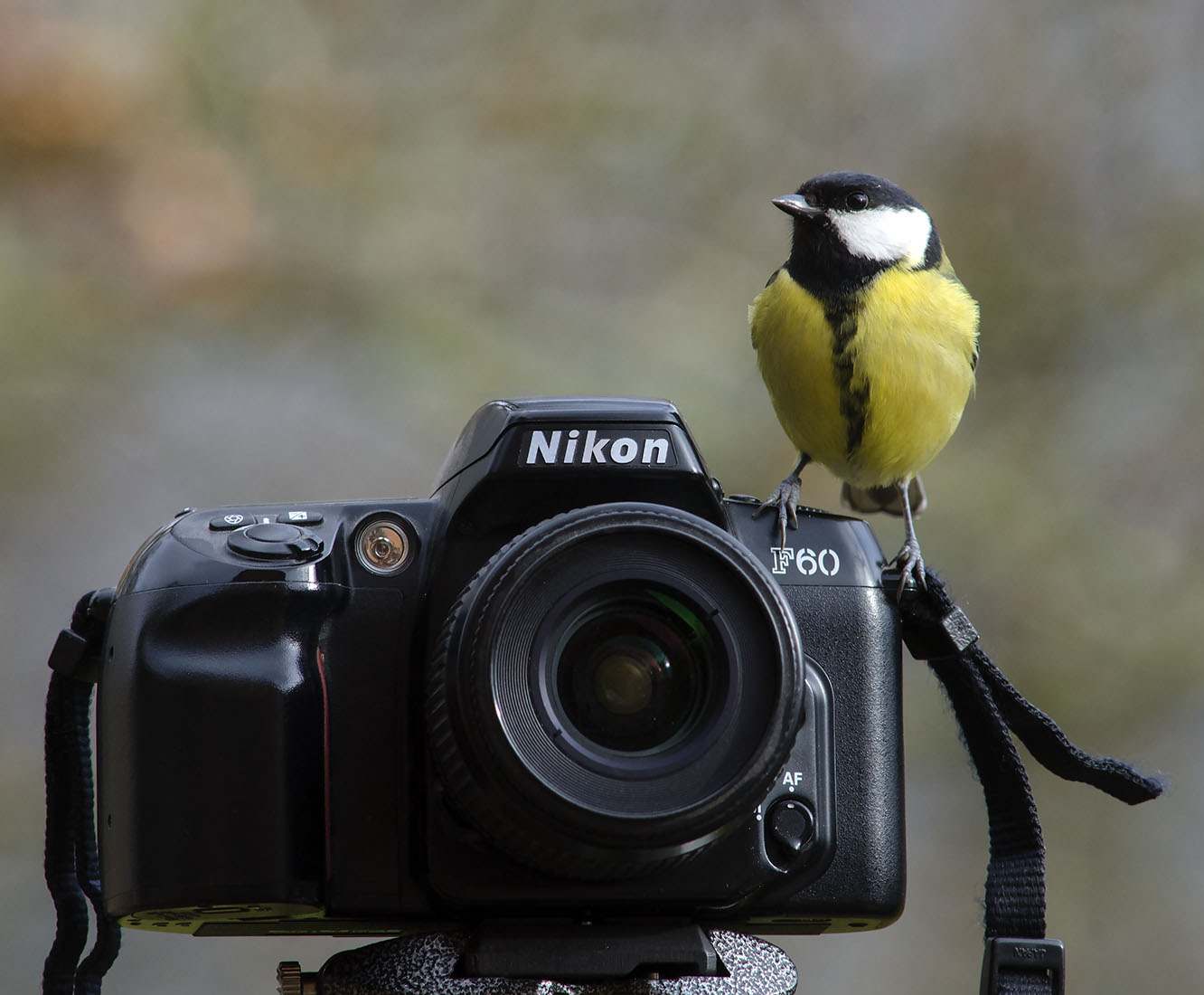 Great tit on camera (Parus major).